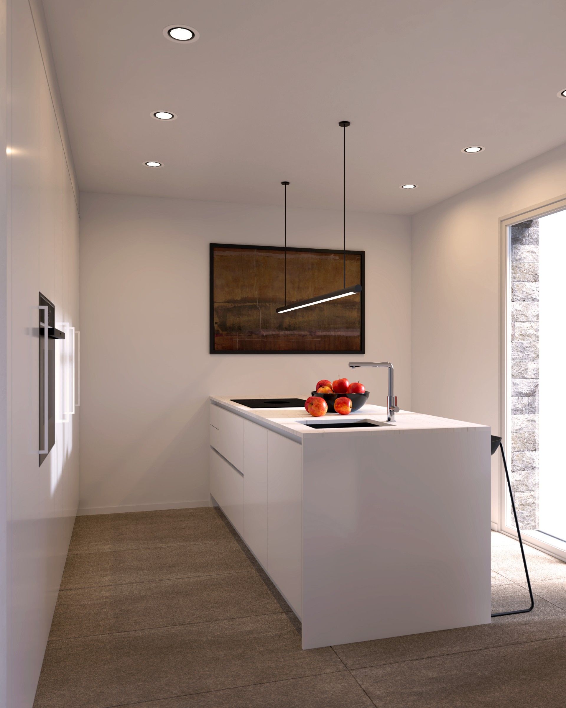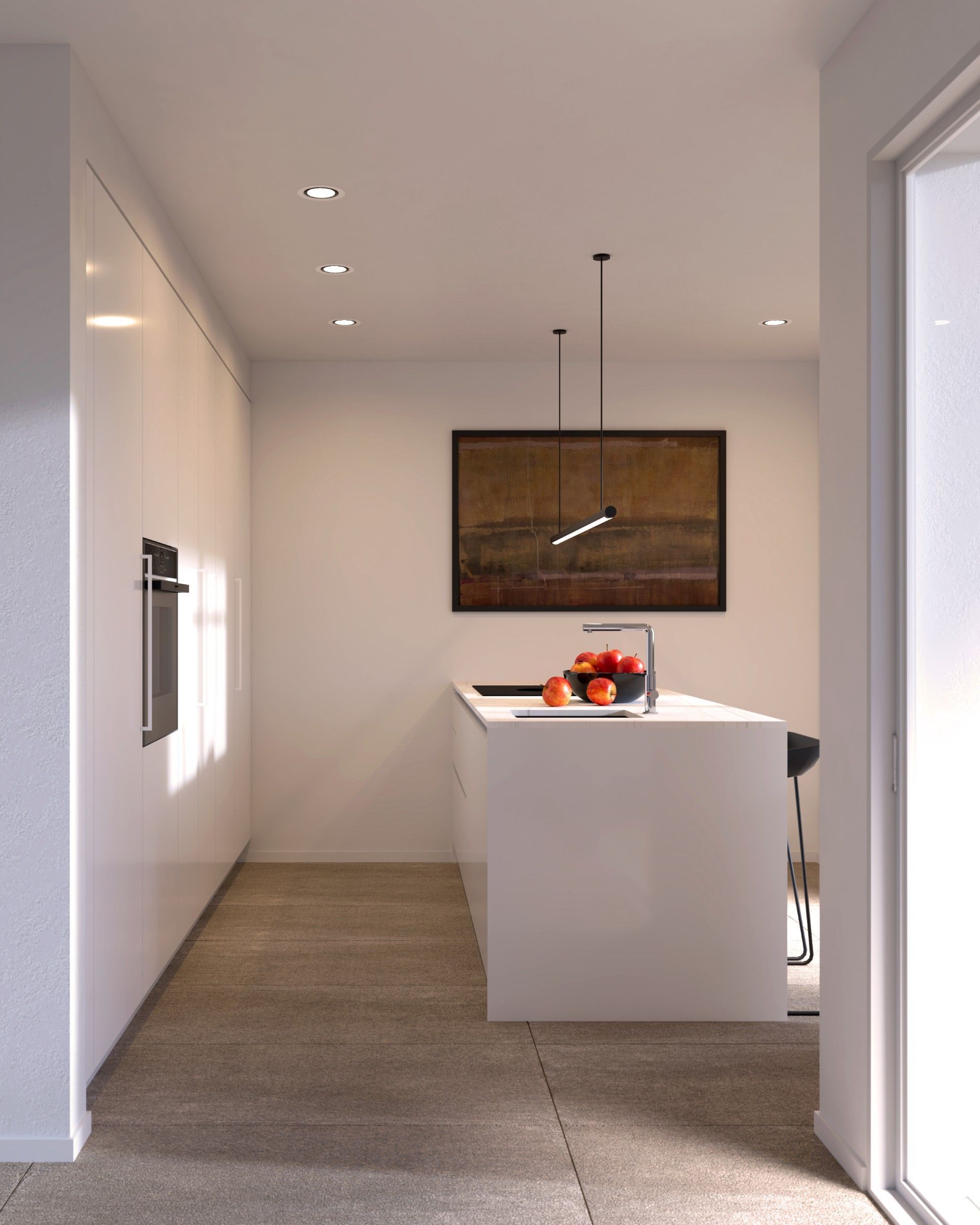 Lo stabile progettato ospita 4 appartamenti di 4,5 locali, si ispira all'architettura minimalista, gli spazi disegnati sono ariosi, puliti e funzionali. L'edificio si presenta con linee precise, dritte e semplici, colori neutri (bianco) e materiali naturali.